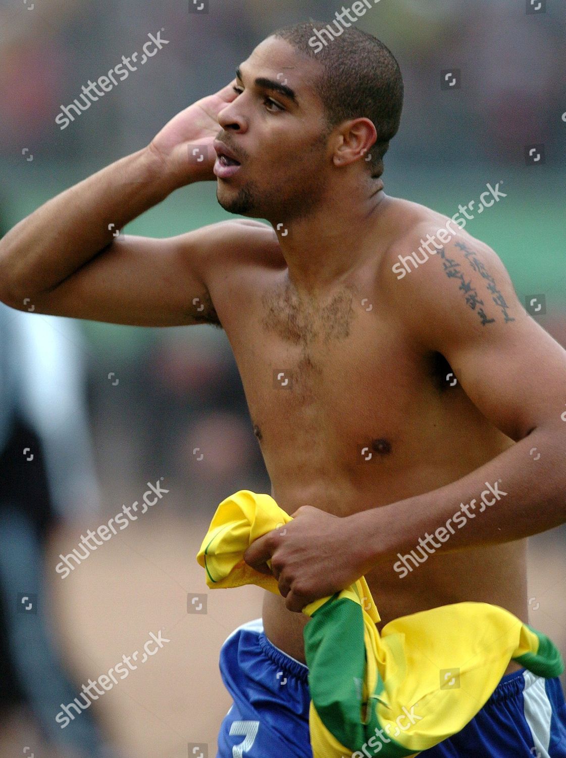 Brazilian Forward Adriano Celebrates After Scoring Against