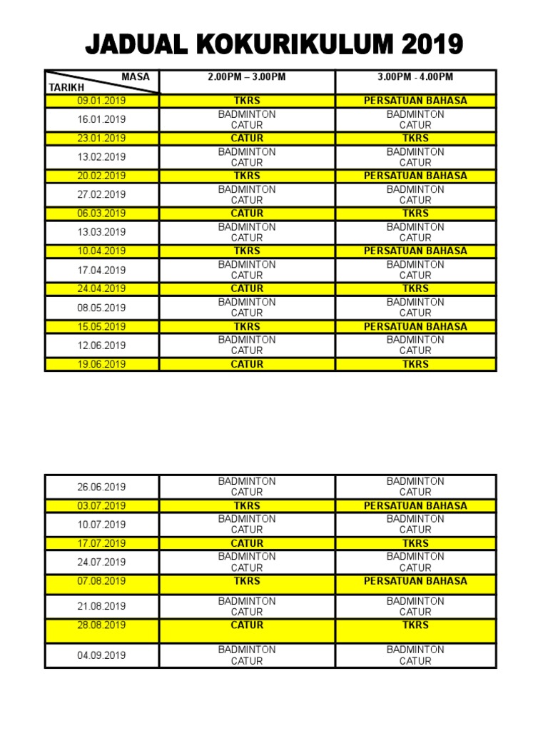 Jadual Koko 2019 www.scribd.com